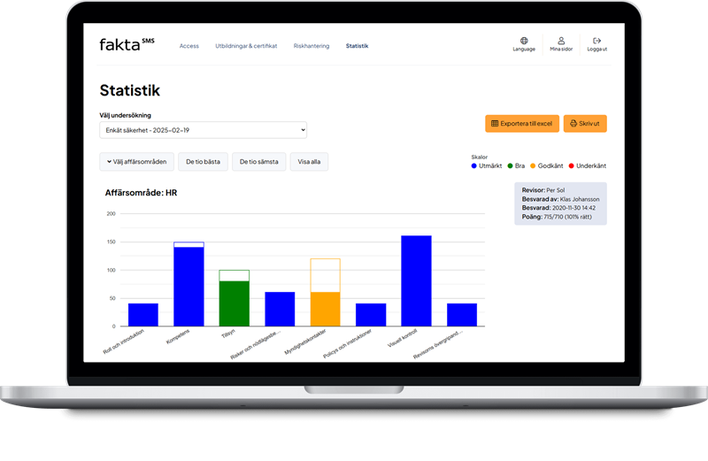 Med rätt data och analyser får ledningen en tydlig bild av hur säkerhetsarbetet fungerar i praktiken, vilket minskar risken för olyckor, säkerhetsbrister och regelbrott. Genom att arbeta systematiskt med uppföljning visar företaget att säkerhet är en prioritet – och skapar en tryggare och mer effektiv arbetsmiljö.